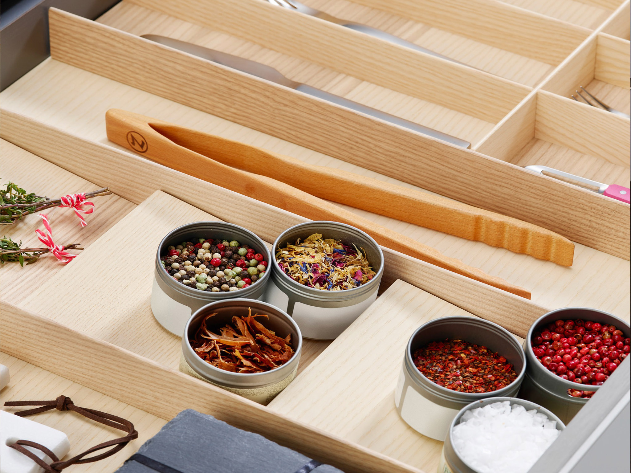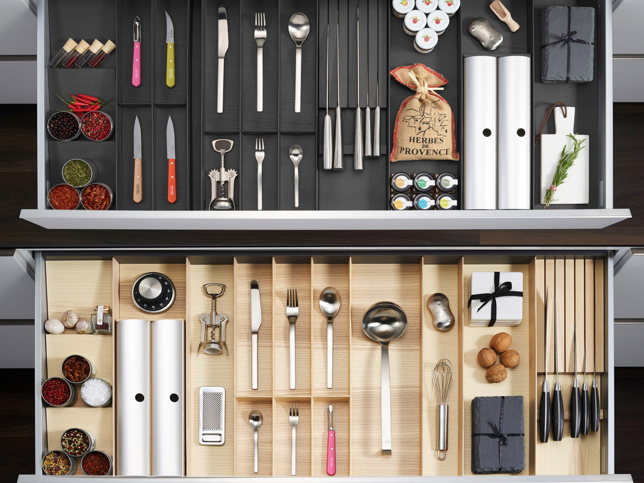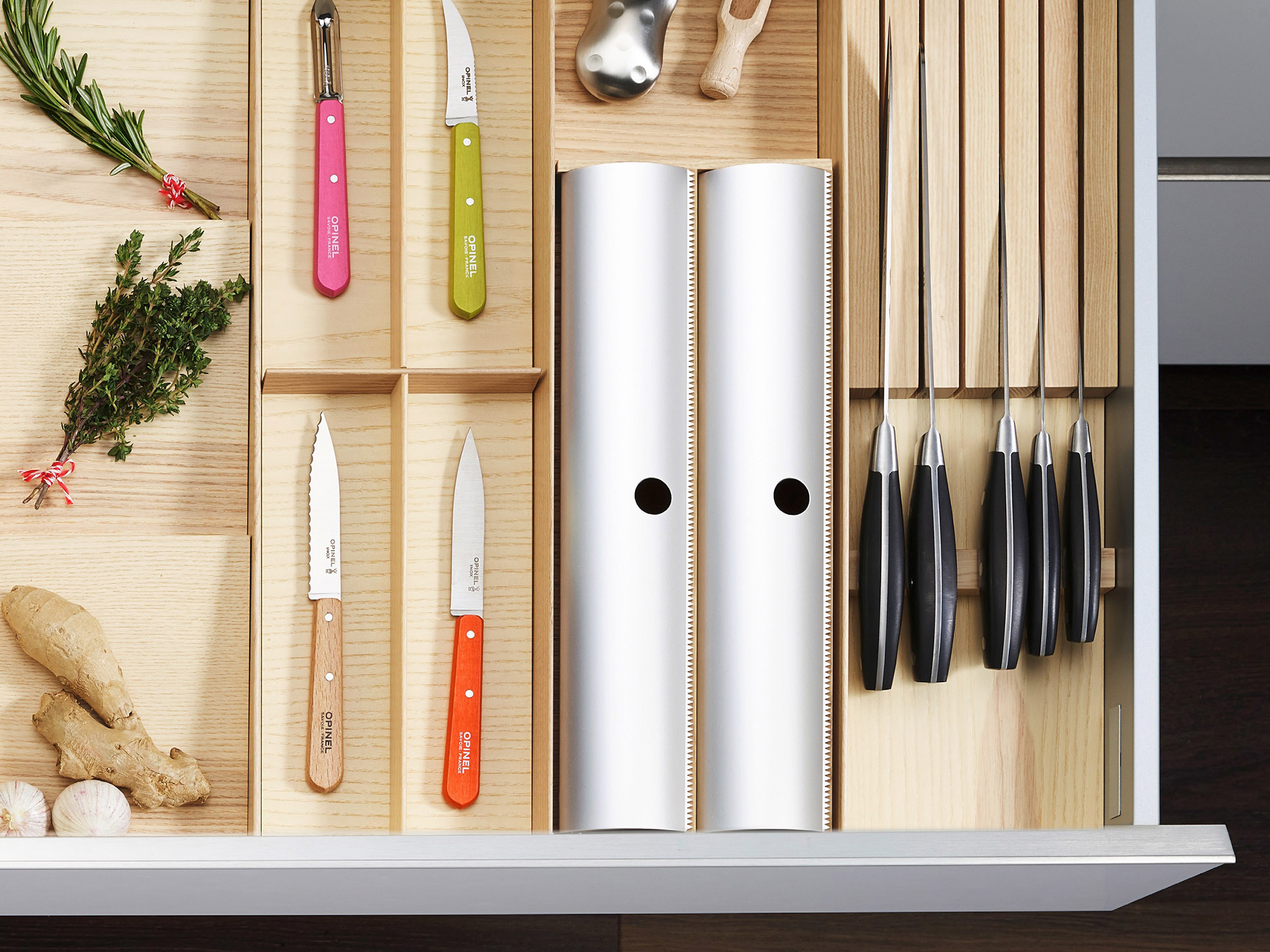 Утонченный и практичный мастер минимализма — модульная система организации для столовых приборов ФайнЛайн Линик. Организацию пространства легко сконфигурировать из отдельных элементов для любого выдвижного ящика. Благодаря целостному внешнему виду с единым дном, внутреннее пространство выдвижного ящика выглядит солидно и впечатляюще.