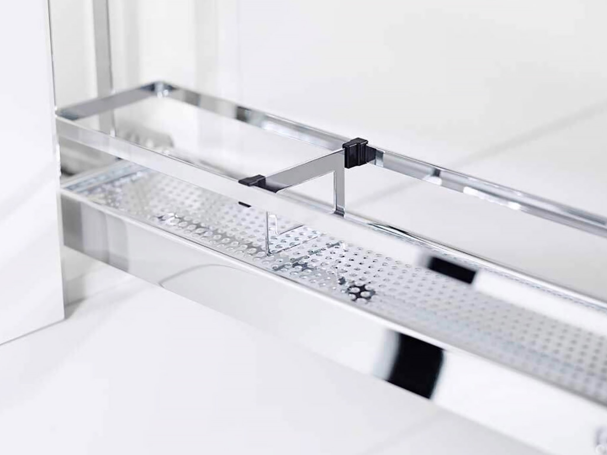 Изящность в простоте и разумном использование узких пространств в нижних шкафах вашей кухни. Оптимально установить его рядом с варочной панелью: так у вас всегда под рукой будут специи, масла, соусы и другие продукты. Направляющие обеспечивает бесшумное полное выдвижение механизма и легкий доступ к хранящимся продуктам.